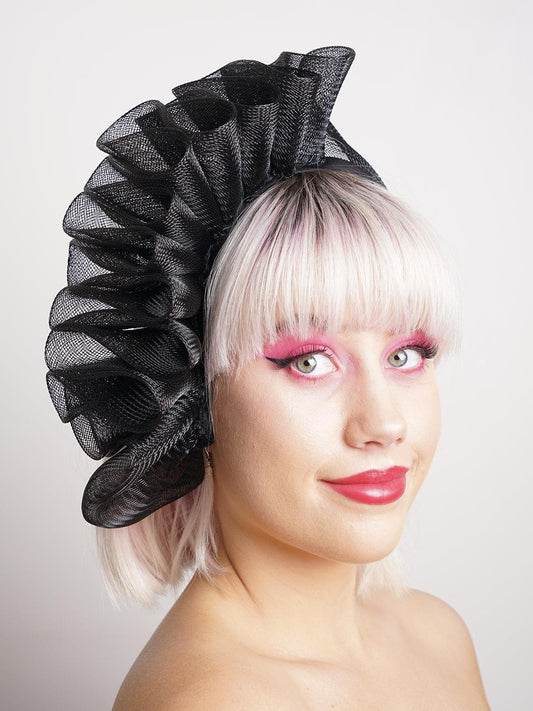Black Crinoline Spiral Hat