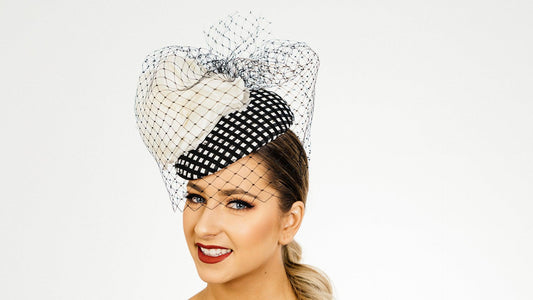 White Feather Flower Fascinator on black glass
