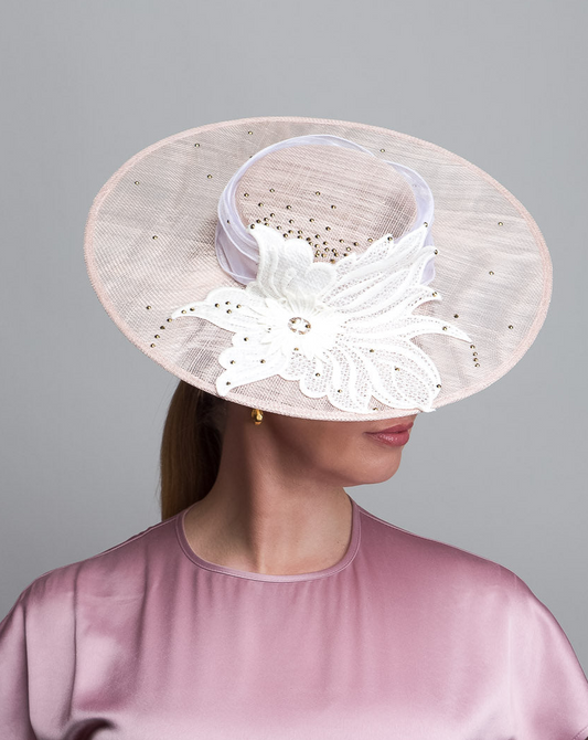 Light Pink White Lace Boater