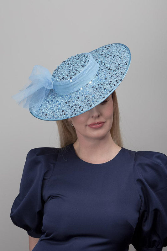 Blue Sequined Boater Hat